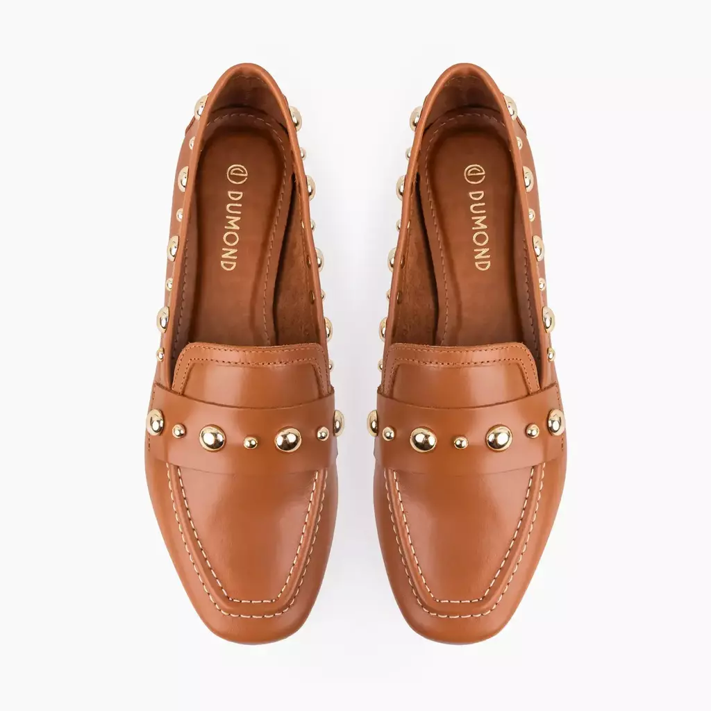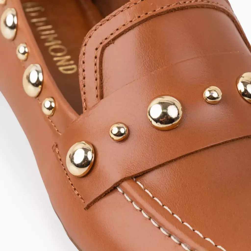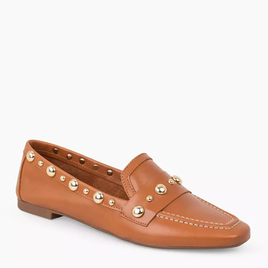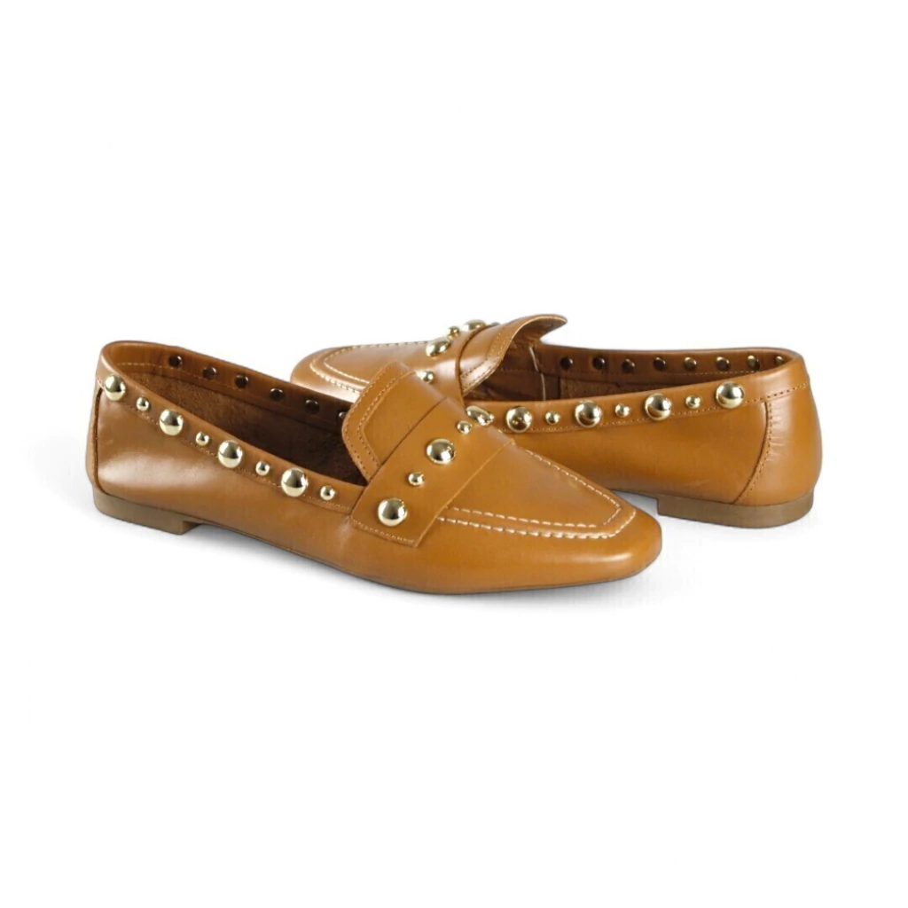 DESCRIÇÃO: Esse mocassim caramelo é a combinação perfeita entre estilo moderno e conforto. Confeccionado em material sintético de toque macio, o modelo apresenta bico fino e costuras aparentes que valorizam o design. O destaque fica por conta das aplicações de tachas douradas, que adicionam um toque fashion e sofisticado à peça. Versátil e elegante, é ideal para compor produções casuais com um toque de personalidade, sem abrir mão da praticidade no dia a dia.
