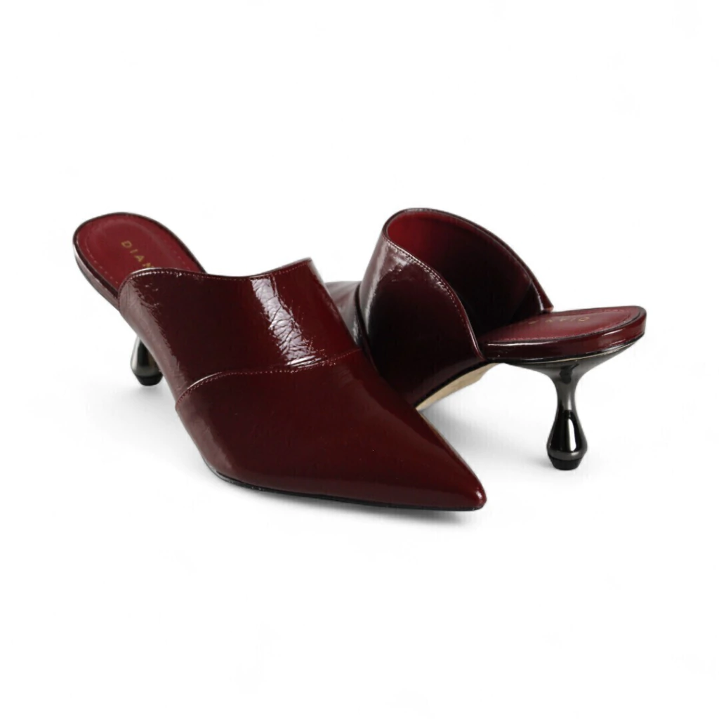 DESCRIÇÃO: Esse mule em tom vinho traz sofisticação e personalidade ao visual. O design de bico fino confere elegância, enquanto o salto baixo em formato taça adiciona um toque moderno e feminino. Feito em material com acabamento envernizado, o modelo é ideal para compor produções refinadas, transitando facilmente do dia para a noite. Um calçado versátil que une estilo e conforto na medida certa.