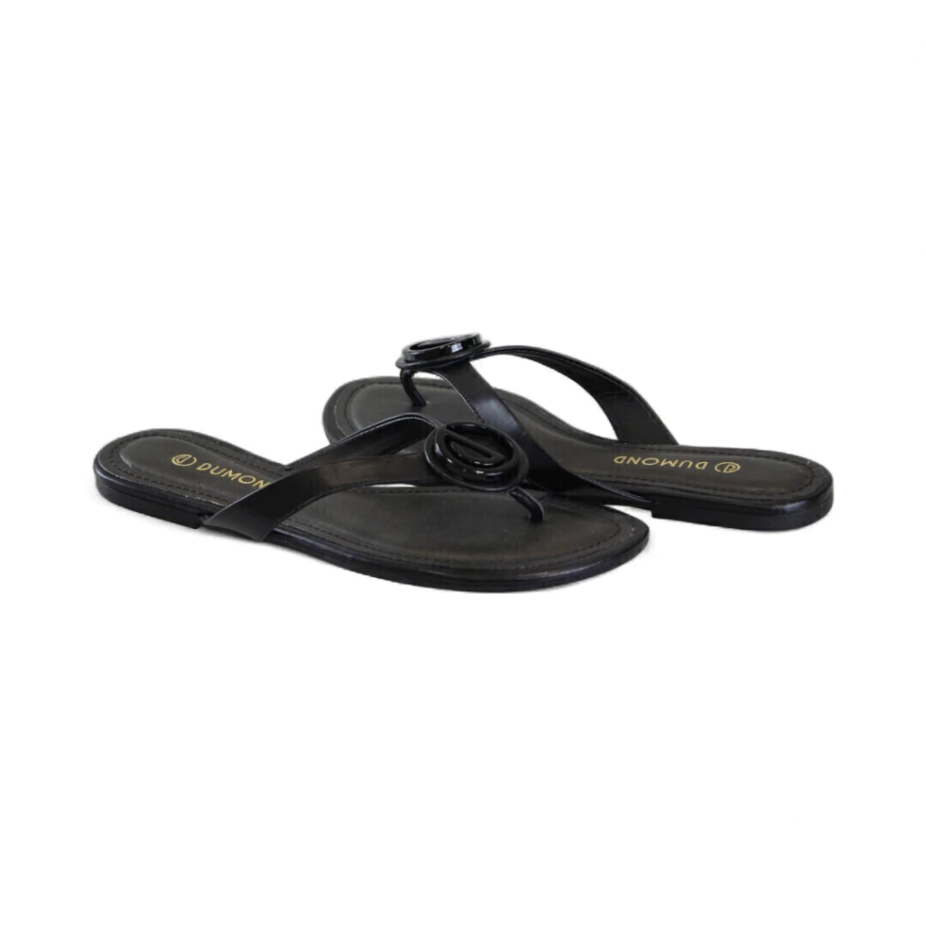 DESCRIÇÃO: Essa rasteira preta é sinônimo de praticidade e elegância para o dia a dia. O modelo possui tiras finas com detalhe em argola central que adiciona um toque moderno e delicado ao design. Confeccionada em material de acabamento brilhante, oferece conforto através do solado flat e palmilha macia. Ideal para compor looks casuais com estilo, combinando facilmente com vestidos, shorts ou saias.