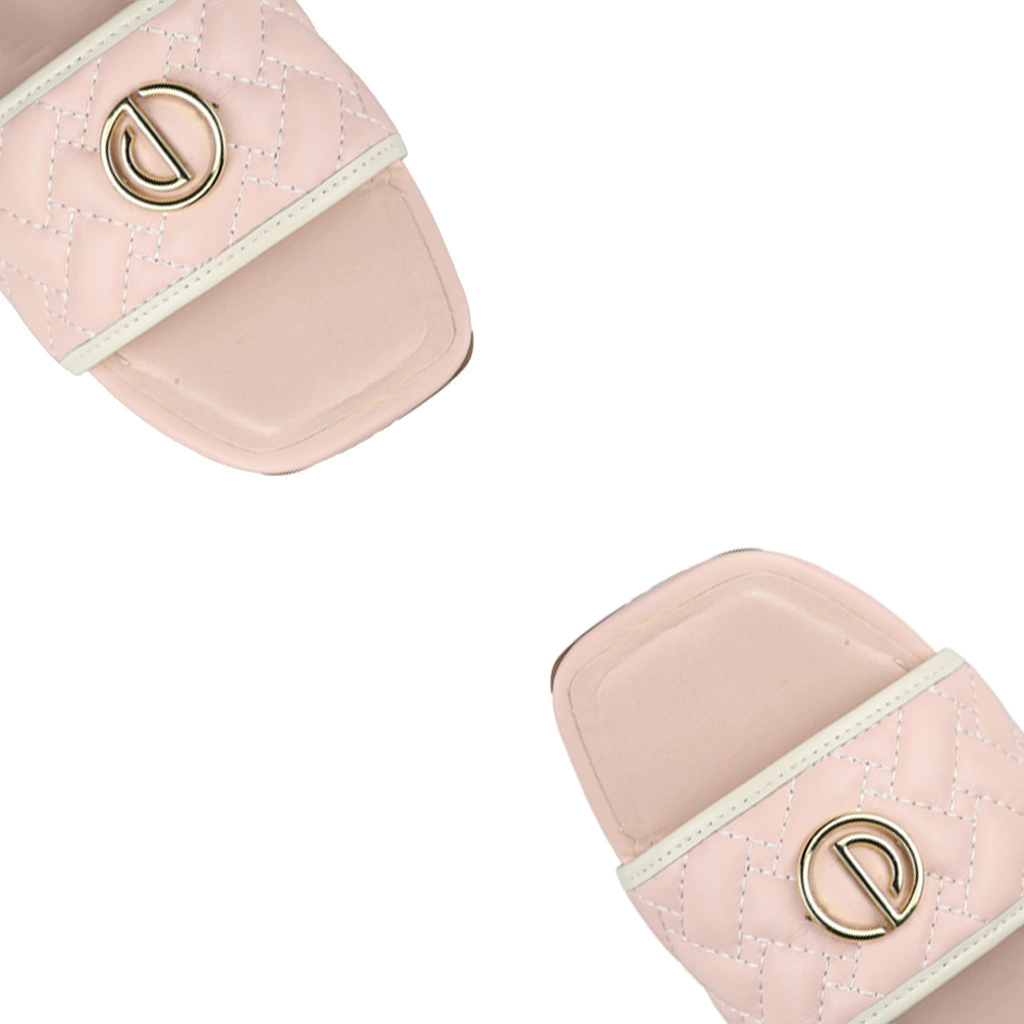 As mules apresentam um design moderno e elegante, com um cabedal em um tom suave de rosa. A parte superior é texturizada com um padrão trançado, conferindo um toque sofisticado. Um detalhe em metal dourado no centro adiciona um elemento de destaque, enquanto a faixa em tom claro ao redor proporciona um contraste sutil. Com um solado plano, essas mules são confortáveis e práticas, perfeitas para o uso diário e para compor looks casuais e despojados.