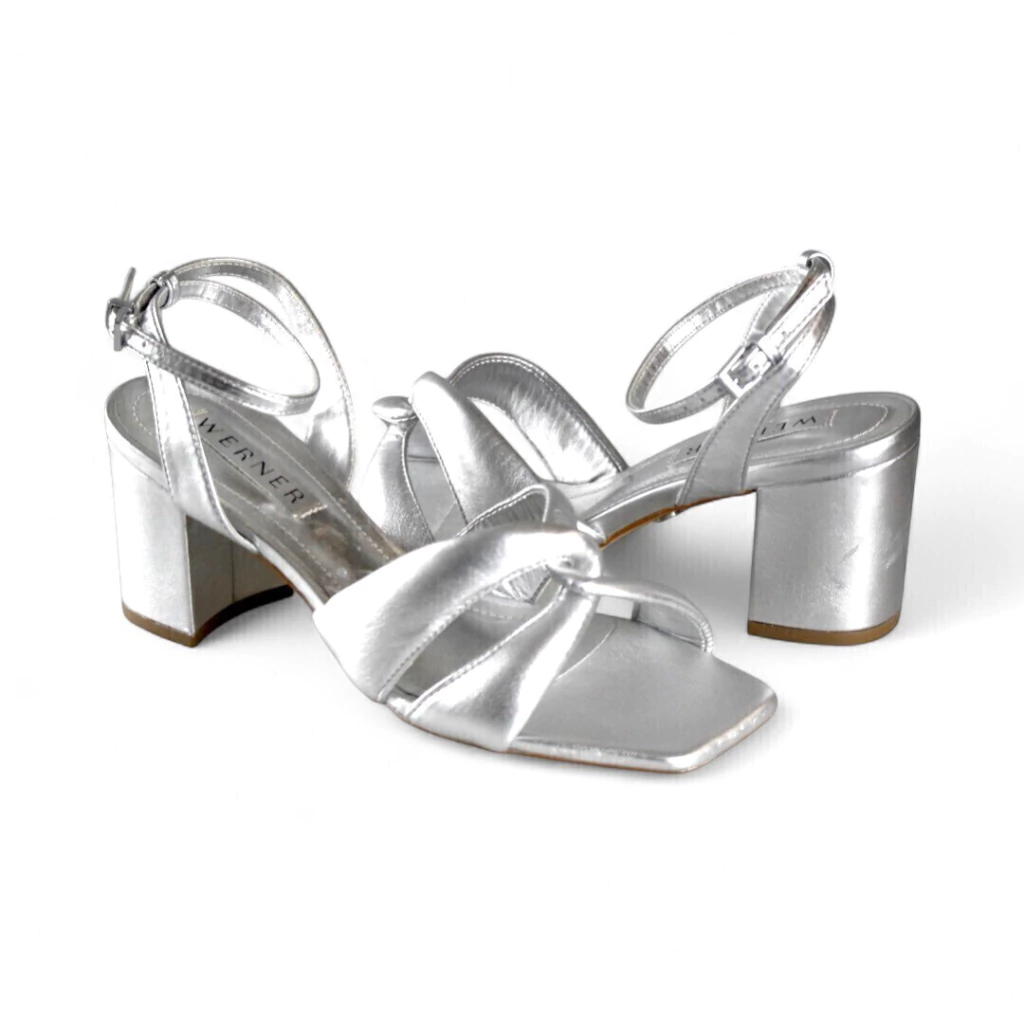 DESCRIÇÃO: Essa sandália prata é sofisticada e versátil, ideal para compor produções elegantes com conforto. O modelo apresenta tiras largas com acabamento metalizado que se cruzam na parte frontal, formando um laço delicado que valoriza o design. O salto bloco médio garante estabilidade e estilo, enquanto a tira ajustável no tornozelo proporciona segurança e um toque delicado. Com bico quadrado e brilho sutil, é perfeita para eventos, festas ou ocasiões especiais em que se busca elegância e praticidade em um único calçado.