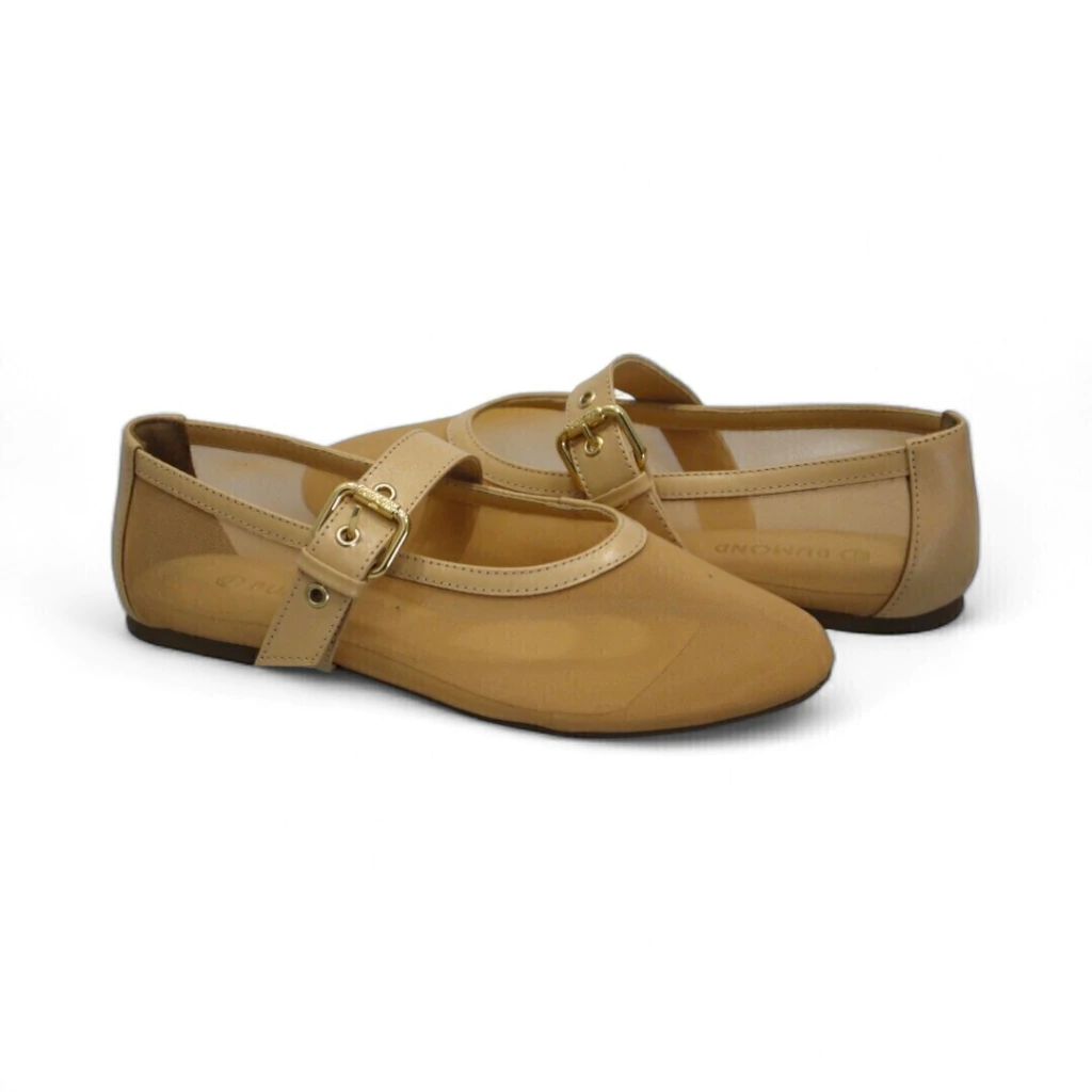 DESCRIÇÃO: Essa sapatilha apresenta um design clássico e delicado, com inspiração no modelo Mary Jane. Confeccionada em material sintético nude, ela possui acabamento fosco e recortes laterais em tela translúcida que adicionam leveza e modernidade ao visual.