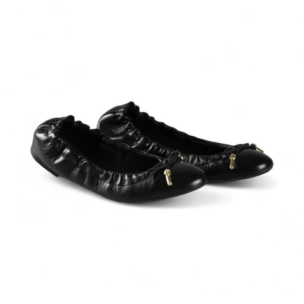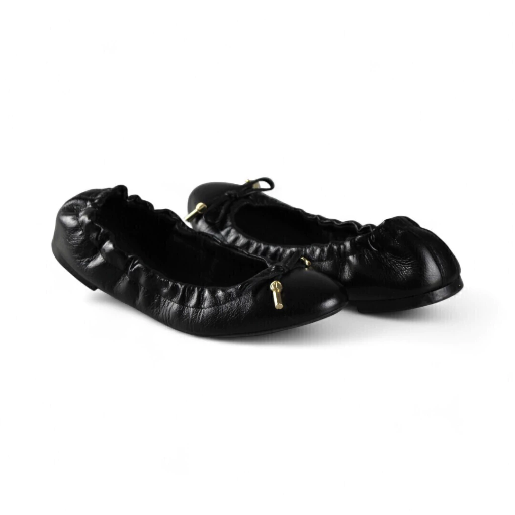 DESCRIÇÃO: Essa sapatilha preta é o equilíbrio perfeito entre conforto e elegância. O modelo apresenta acabamento em couro macio com leve brilho, elástico nas laterais que se ajusta ao pé e laço delicado na parte frontal com ponteiras douradas que adicionam um toque sofisticado. De bico arredondado e sola baixa, é uma opção versátil para o dia a dia, combinando facilmente com looks casuais ou de trabalho. Ideal para quem busca praticidade sem abrir mão do estilo.