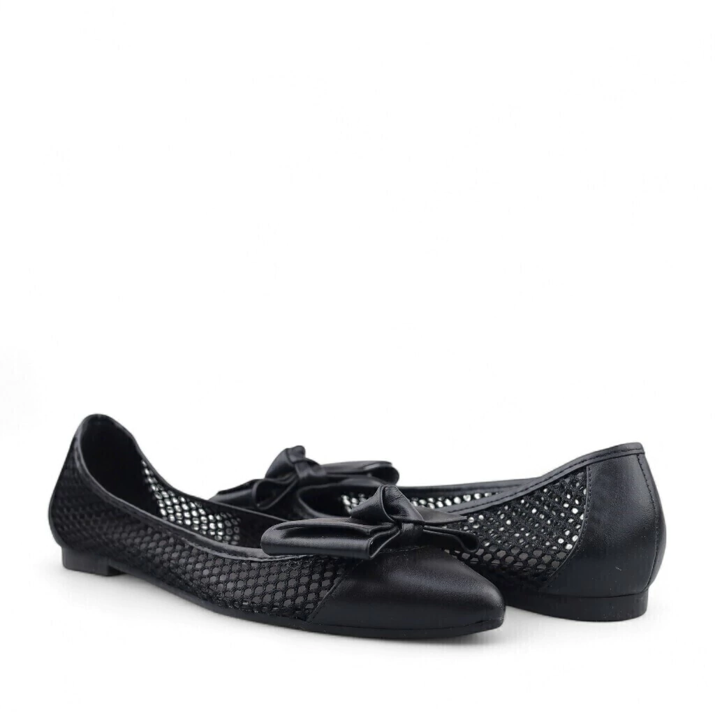 DESCRIÇÃO: A imagem apresenta uma sapatilha preta com um design inovador que combina um material liso na parte frontal e uma parte traseira em rede. O bico é levemente pontudo, complementado por um laço delicado na parte superior, que adiciona um toque feminino ao calçado. A parte em rede proporciona ventilação, tornando-a uma opção ideal para climas mais quentes. A sola é plana, garantindo conforto para o uso diário. Essa sapatilha é perfeita para compor looks casuais, podendo ser combinada com shorts, saias ou vestidos, trazendo um estilo descontraído e moderno.