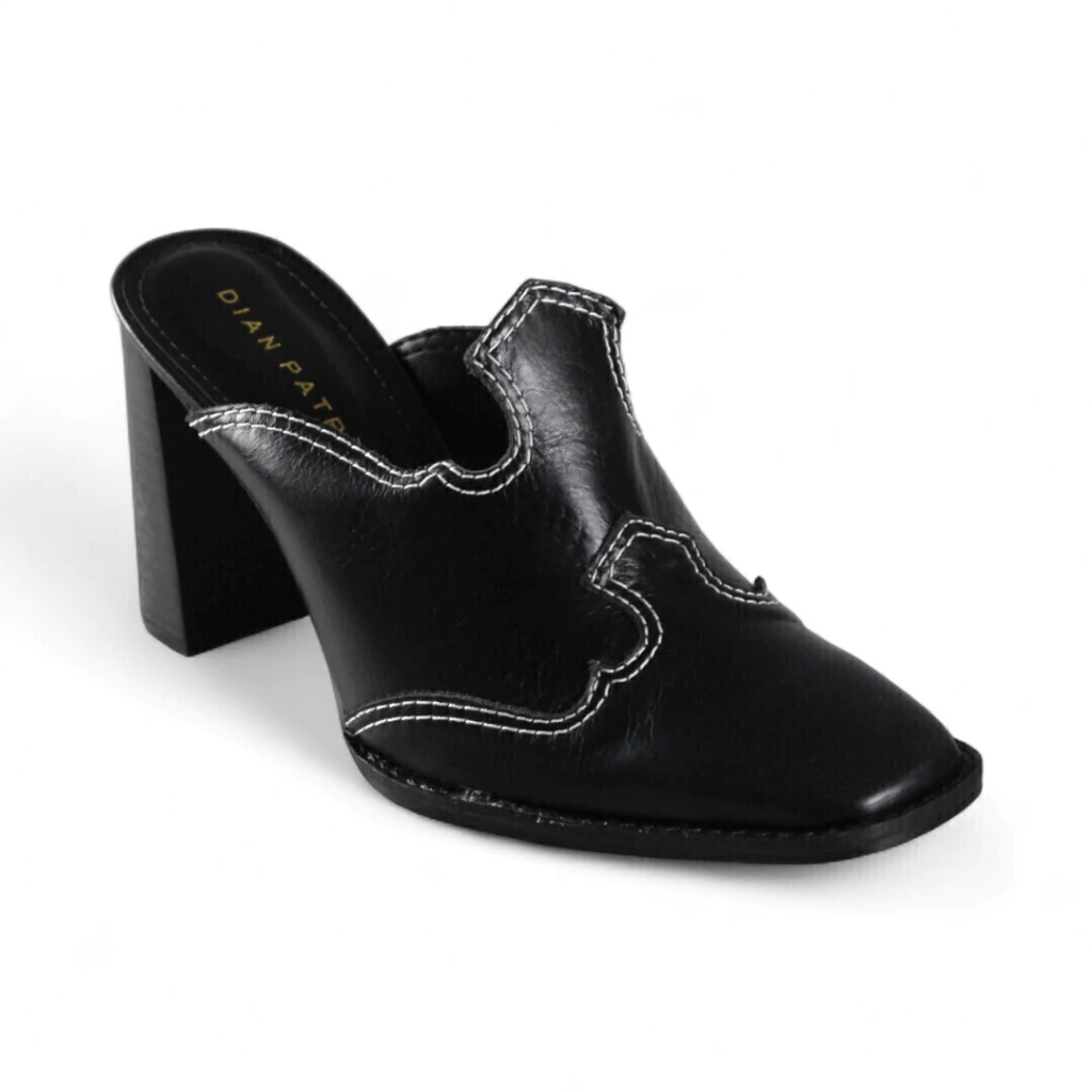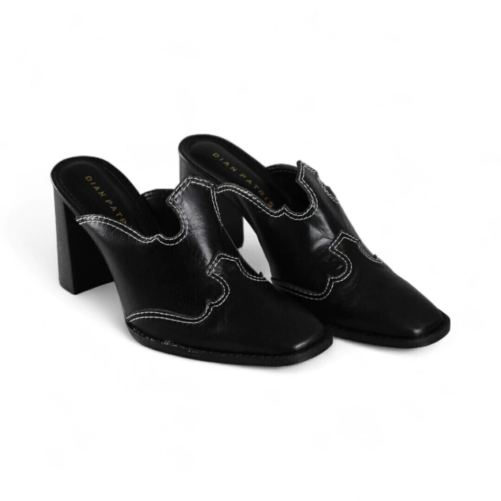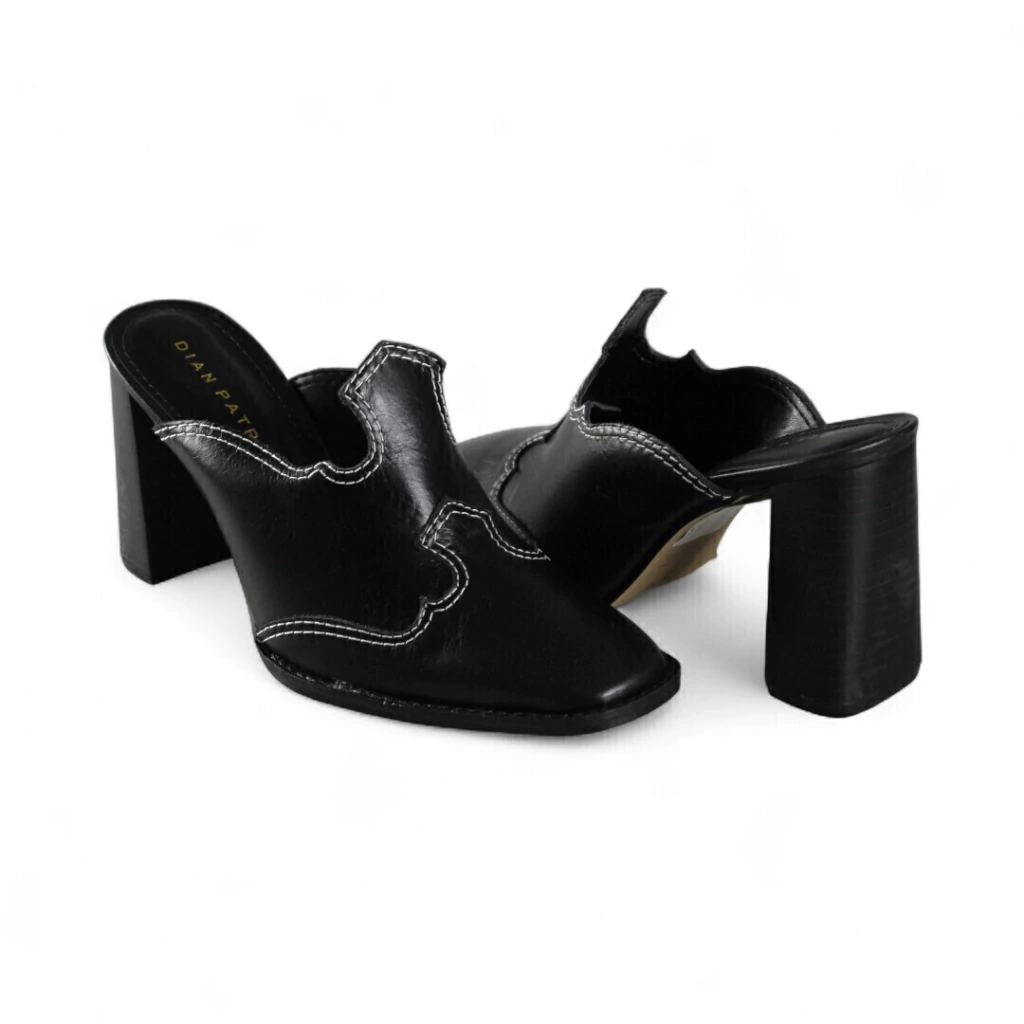 DESCRIÇÃO: Essa mule preta traz um design moderno com toque western, perfeito para composições cheias de estilo. Confeccionada em material de acabamento liso com costuras contrastantes em branco, o modelo apresenta bico levemente quadrado e salto bloco alto, que garante conforto e elegância. Uma peça versátil e sofisticada, ideal para elevar produções casuais e urbanas.