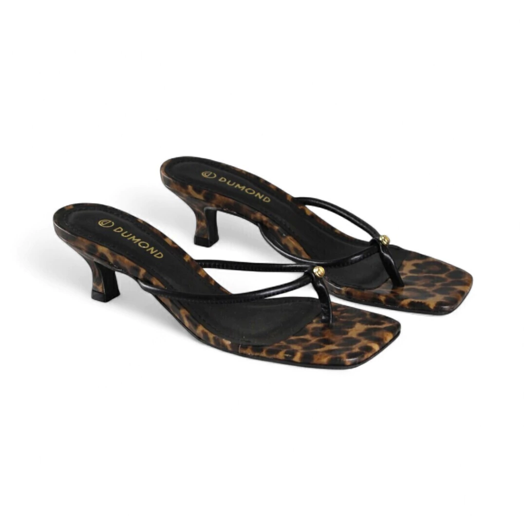 DESCRIÇÃO: Essa sandália da Dumond é puro charme e elegância. Com estampa animal print em tons terrosos, o modelo traz um toque de ousadia na medida certa. As tiras finas em preto com delicado detalhe dourado acrescentam sofisticação e leveza ao design. O salto baixo tipo taça garante conforto e estilo, ideal para produções modernas e versáteis. Perfeita para quem busca um calçado refinado, mas prático, que transita com facilidade do dia para a noite.