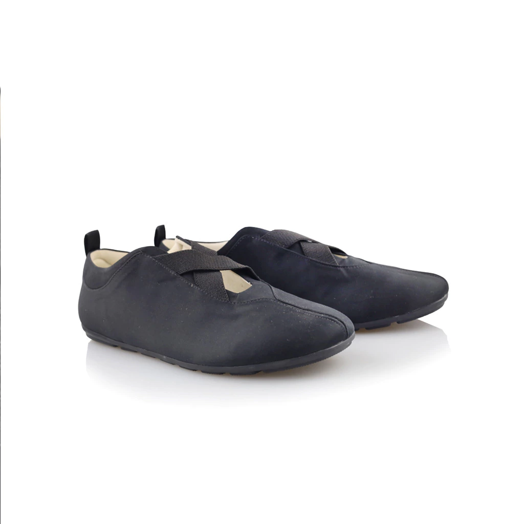 DESCRIÇÃO: A imagem apresenta um tenis em tecido na cor preta! Tenis diferente para quem gosta de arrojar!